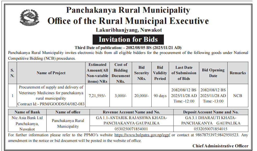 तेश्रो पटक बोलपत्र आह्वान सम्बन्धि सूचना !!