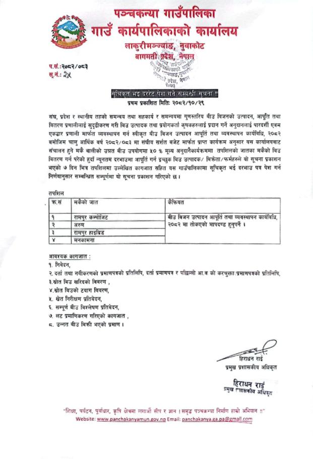 मकैको उन्नत विउँ माग गर्ने सम्बन्धी सूचना !!