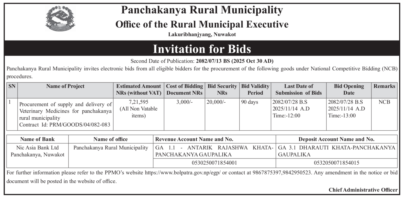 सार्वजनिक खरिद/बोलपत्र सूचना