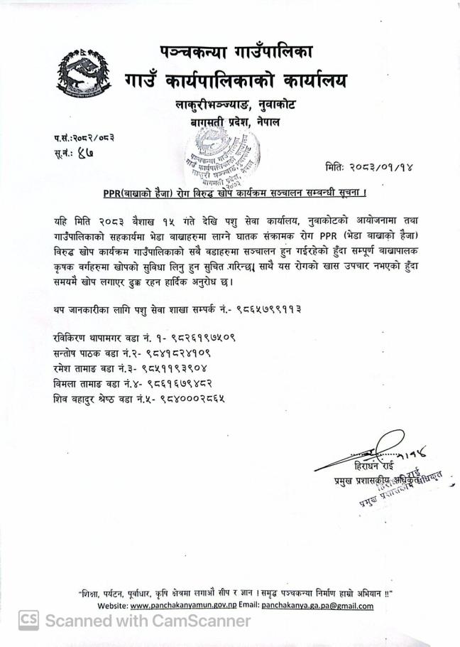 PPR (बाख्राको हैजा) रोग विरुद्ध खोप कार्यक्रम सञ्‍चालन सम्बन्धी सूचना !!