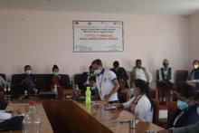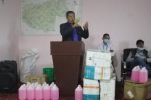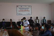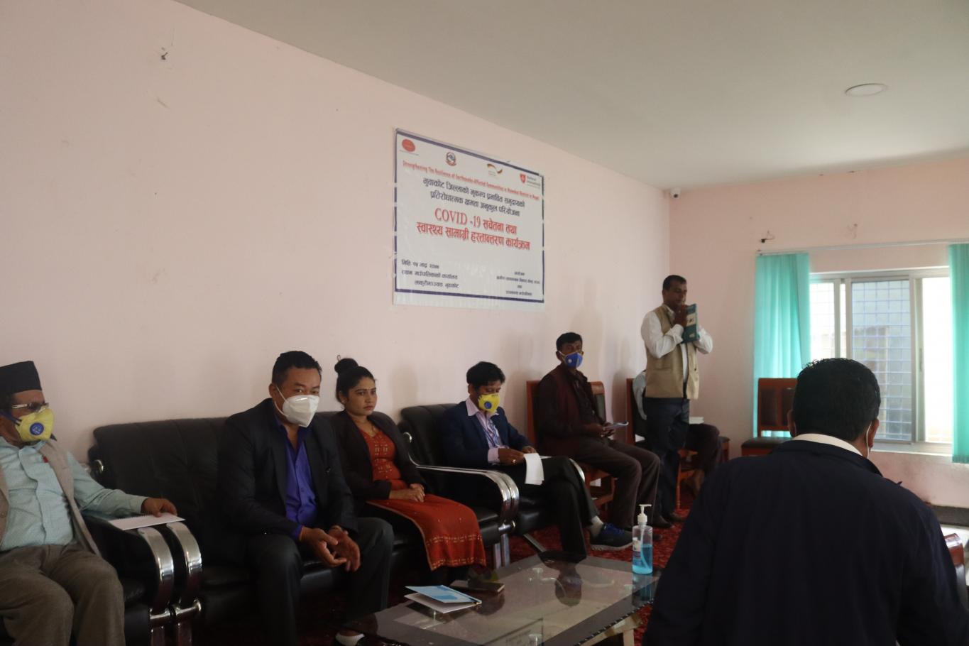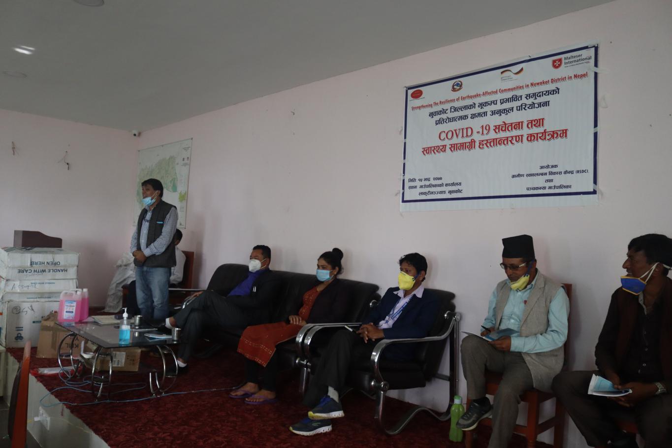 नुवाकाेट जिल्लाकाे भूकम्प प्रभावित समुदायकाे प्रतिराेधात्मक क्षमता अनुकुल परियाेजना काेभिड - १९ सचेतना तथा स्वास्थ्य सामग्री हस्तान्तरण कार्यक्रम