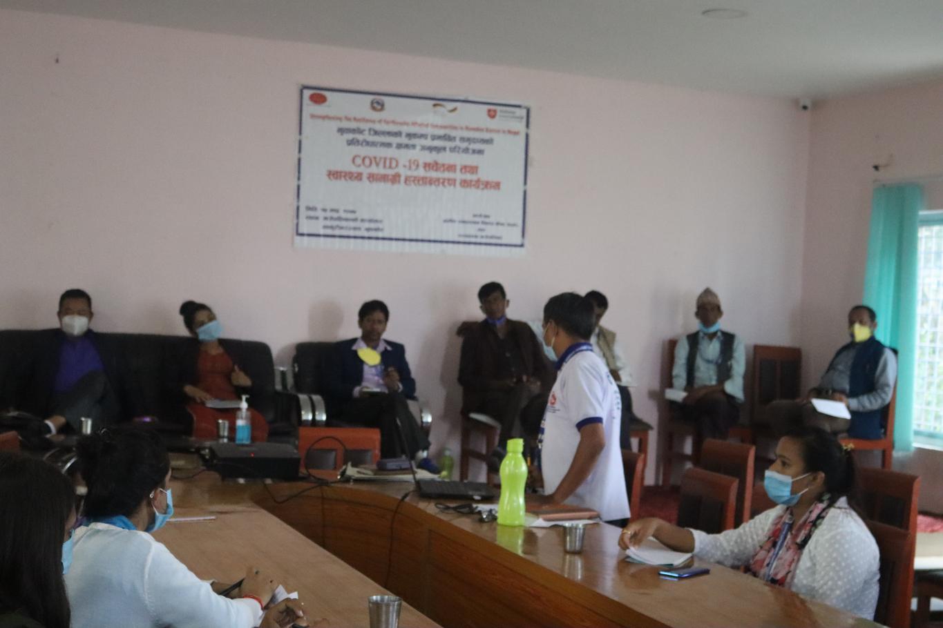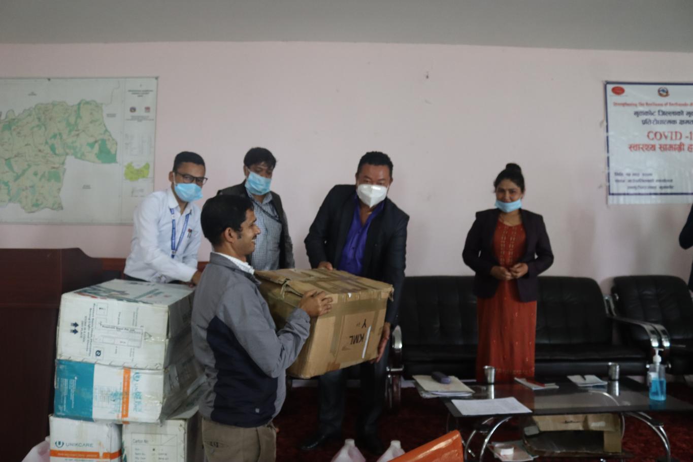 Home » नुवाकाेट जिल्लाकाे भूकम्प प्रभावित समुदायकाे प्रतिराेधात्मक क्षमता अनुकुल परियाेजना काेभिड - १९ सचेतना तथा स्वास्थ्य सामग्री हस्तान्तरण कार्यक्रम