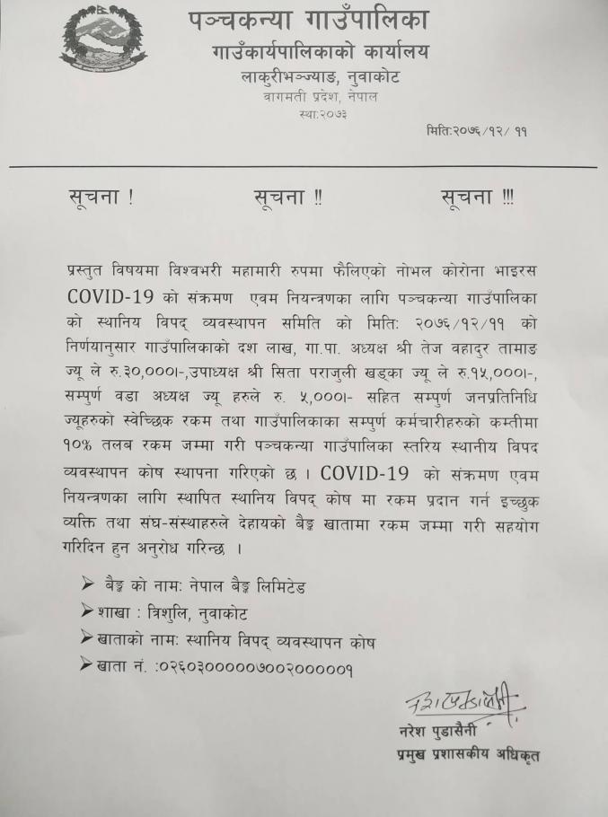पञ्चकन्या गाउँपालिका, गाँउ कार्यपालिकाको कार्यालय, लाकुरीभञ्ज्याङ, नुवाकोट